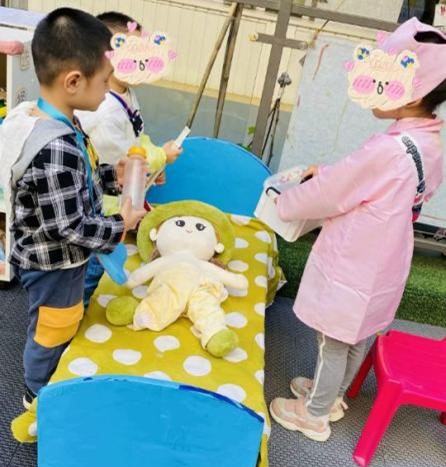 在这里,无时无刻不在发生着有趣的事情。记得有一次,一个扮演小病人的孩子,因为表演太过投入,哭泣得十分逼真,引得周围的小朋友纷纷上前安慰,有的递纸巾,有的轻拍背脊,那份纯真的同理心和互助精神让在场的我深受感动。还有一天,一位小医生突发奇想,用树叶制作成草药,声称这是专治不开心的神奇药方,那一刻,创意与想象的火花在孩子们中间闪耀,让人不禁感慨,孩子的世界何其美妙!