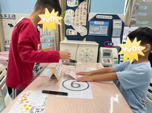 在盛世银行舱里,幼儿们通过扮演银行的各种工作人员,如:门口的保安、钱币设计师、大堂经理、柜员、客户等来熟悉银行,并模拟银行各种业务交易和日常工作,比如:存款和取款、兑换钱币、填写存折、设计具有创意的钱币来获取工资、维持银行秩序等,通过模拟来学习如何正确管理钱财和理解货币的价值。