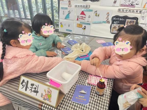 游戏正式开始后,小医生们根据自己的角色进入不同的科室上班,这时如果你作为病人前去看病,他们会一边煞有介事地询问你的症状,一边小心翼翼地用听诊器检查,然后用玩具针筒给予疫苗,最后还会模仿大人安慰害怕的小病人。如果你去外科,经验丰富的小医生们还会用彩色绷带象征性地为你包扎伤口,发放健康糖果作为奖励,整个过程充满了仪式感和温馨的气氛。