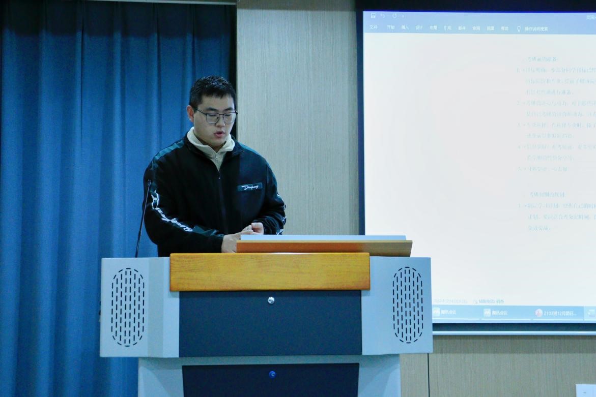 活动伊始,程知为、林景煜分别以考研经验、教资面试为主题进行经验分享。程知为依据自身的考研经历,针对同学们现阶段关于考研的主要困惑,从考研前的准备、考研的主要流程和考研的注意事项三个方面做了分享。