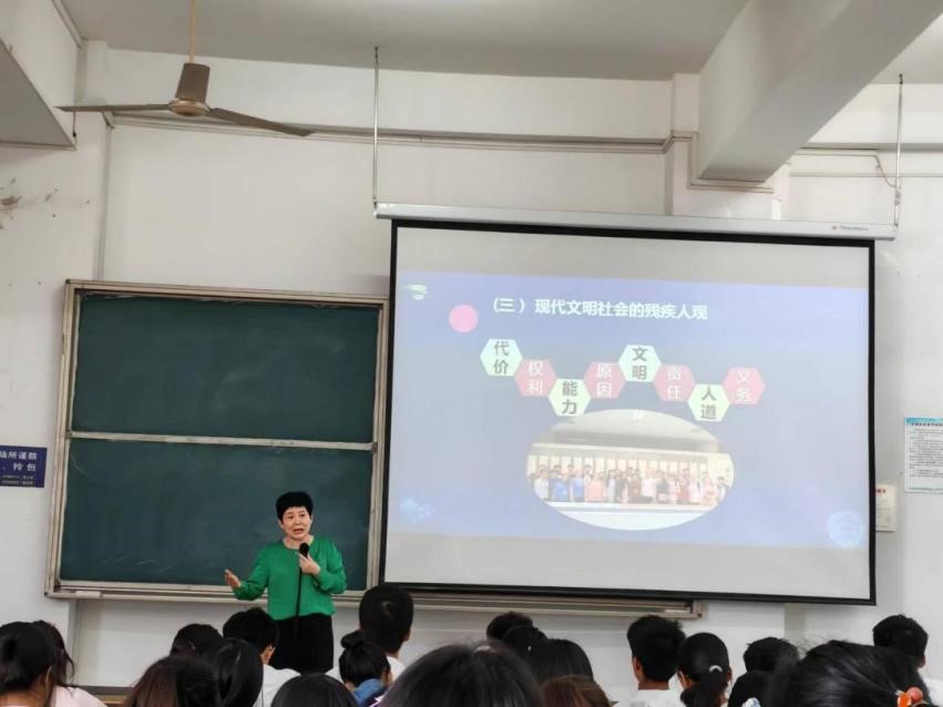 教育学院融媒体中心讯(通讯员 张江丽)2023年10月18日下午,《新生研讨课》在9号楼9201教室成功举办了外聘专家讲座。武汉市武昌区培智中心学校校长、湖北省特殊教育教学指导委员会副主任委员、我校特殊教育专业硕士校外导师、全国扶残助残先进个人王霞女士受邀为同学们做了题为“融合教育——新时代教师的使命”的专题讲座。教育学院2023级全体本科新生参与了此次讲座,蔡迎旗教授、孙玉梅副教授等教师代表参加,讲座由孙玉梅主持。