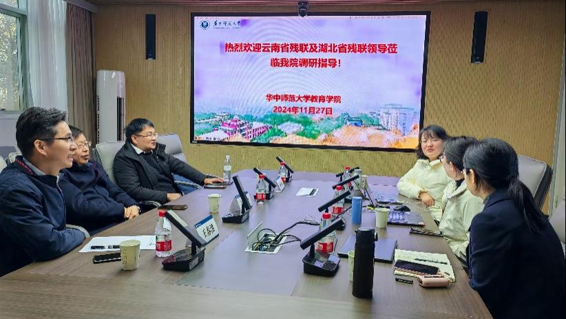 教育学院融媒体中心讯(通讯员:冀心如 郭子谦)2024年11月27日上午,湖北省残工委办公室常务副主任江传曾、云南省残联维权信访处处长杨金笔、云南省残联维权信访处二级调研员王春洪等一行前往华中师范大学教育学院进行调研交流,座谈会于田家炳楼319会议室顺利召开。华中师范大学教育学院院长雷江华、融合教育教研室主任彭兴蓬、融合教育中心副主任苏慧等出席会议。会议由特殊教育系主任孙玉梅主持。