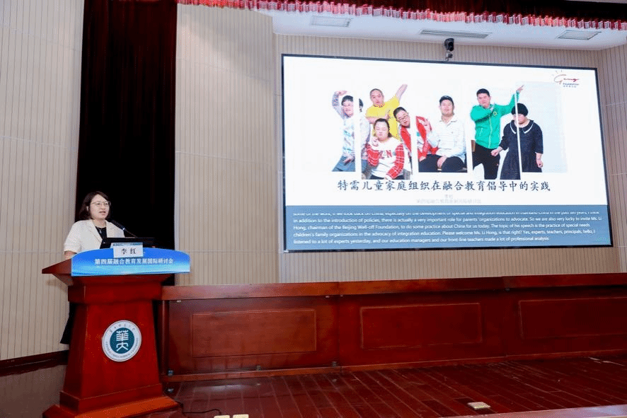 李红分享的主题为“特需儿童家庭组织在融合教育倡导中的实践”。她剖析了心智障碍者群体及其家庭在全生命周期中面临的挑战,强调家长组织在推动融合教育发展中的关键作用。