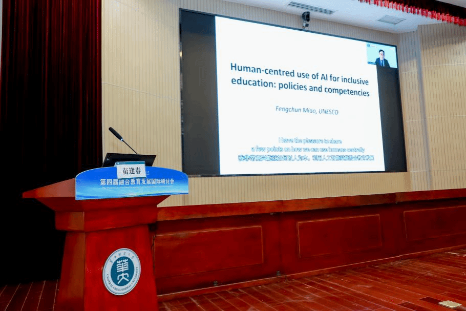 苗逢春代表联合国教科文组织在融合教育国际论坛上发表致辞。他强调了人工智能应用于教育的核心在于构建“教师-学生-人工智能”的三角教学关系,他指出,在利用人工智能赋能教育发展,特别是全纳教育之前,必须正视其潜在风险,聚焦如何发展教师的人工智能素养以及如何将人工智能用于以学生为中心的教学。他以“5D”框架剖析人工智能与融合教育面临的深层挑战,紧密契合联合国教科文组织提出的“教师人工智能能力框架”与“学生人工智能能力框架”。教师框架聚焦人本思维、人工智能伦理、基础应用、教学法和专业发展五大领域,以及获取、深化、创造的进阶三阶段,旨在保障教师权利并提升其素养。学生框架致力于培养负责任、有创造力的人工智能公民,涵盖人本思维、人工智能伦理、技术应用及系统设计,强调理解、应用和创造能力。他呼吁各国政府优先规范人工智能伦理并验证教育工具安全性,大力投入师生人工智能能力建设,推动建立保障人工智能教育包容性使用的新社会契约。他强调需深刻反思后人工智能时代的教育本质,强化价值观教育以应对人工智能对人类文明及核心价值观的挑战,共同推动构建更加包容、公平的未来教育图景。