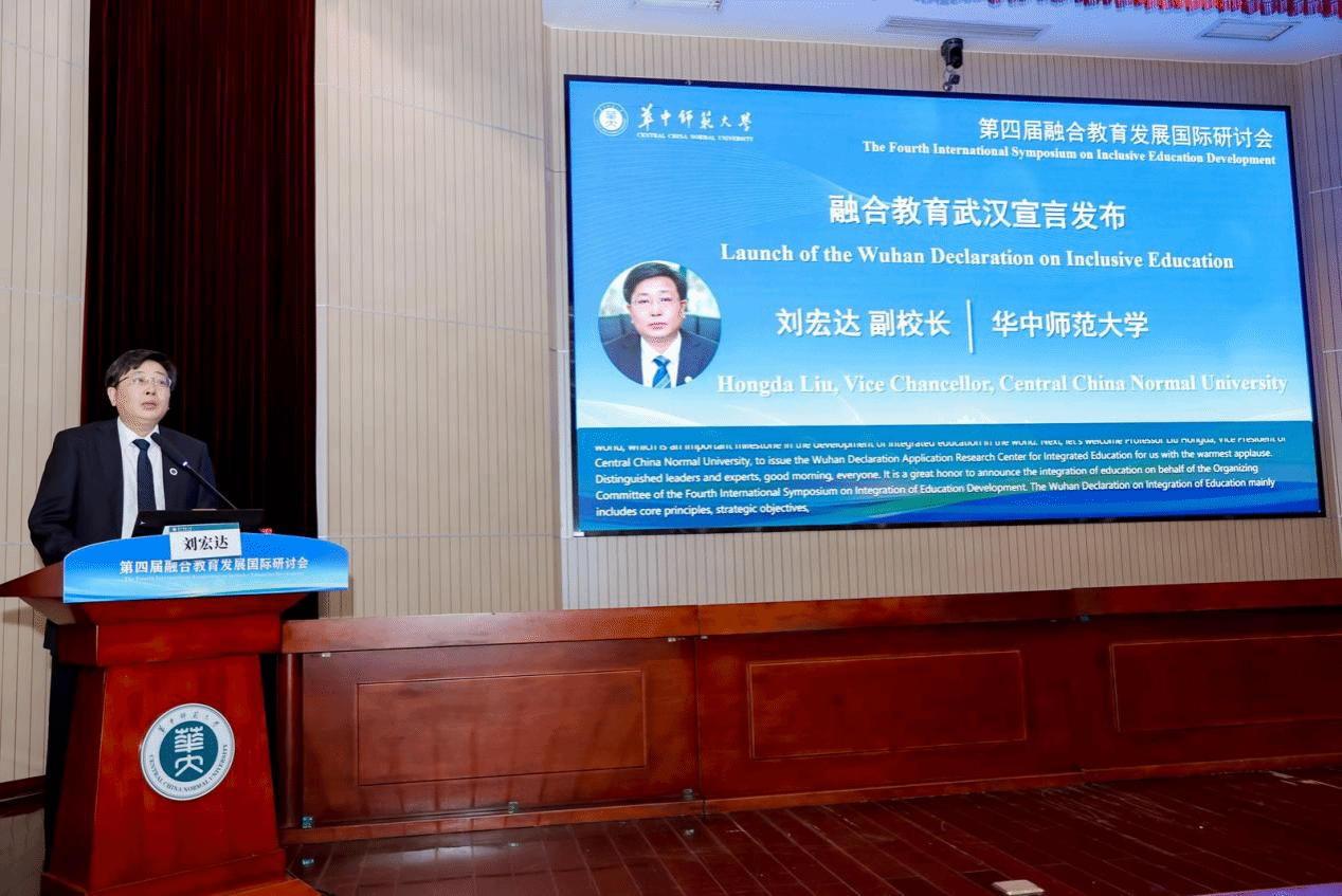 会议最后,刘宏达副校长代表第四届融合教育发展国际研讨会组委会发布《融合教育武汉宣言》。宣言围绕核心原则、战略目标与行动路线,提出构建适宜优质可持续的全球教育新生态。其核心原则涵盖全球协同治理、人权保障、精准服务、技术伦理和多元互鉴五大核心原则。宣言要求分三阶段有序推进融合教育的高质量实施,提出全球政策框架工程、数智化新基建工程、师资队伍建设工程、多元协同共治工程、保障体系强化工程、国际合作创新工程六大行动路线。宣言呼吁各国政府、国际组织、教育机构、企业及公民社会携起手来,践行“适宜、优质、可持续”的理念,让每个儿童都能在公平而有质量的教育中拓展潜能、绽放精彩。