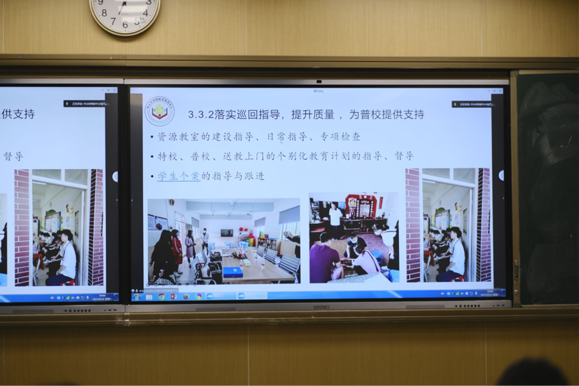 林开仪通过对学生G为例的个案分析,介绍指导中心负责督促特教教师落实巡回指导工作、促进提升融合教育发展质量、为普通学校提供支持的职责。通过制定规划、推进分级分类培训来培养融合教育的同行者,指导中心以“高校专家+特教中心”的方式引领区域教研工作协调发展、共创实践成果。除此之外,指导中心还提供了多种细致入微的评估服务、以多种形式持续开展特教宣导,为构建资源服务体系、高质量特教服务、营造悦纳氛围奠定基础。
