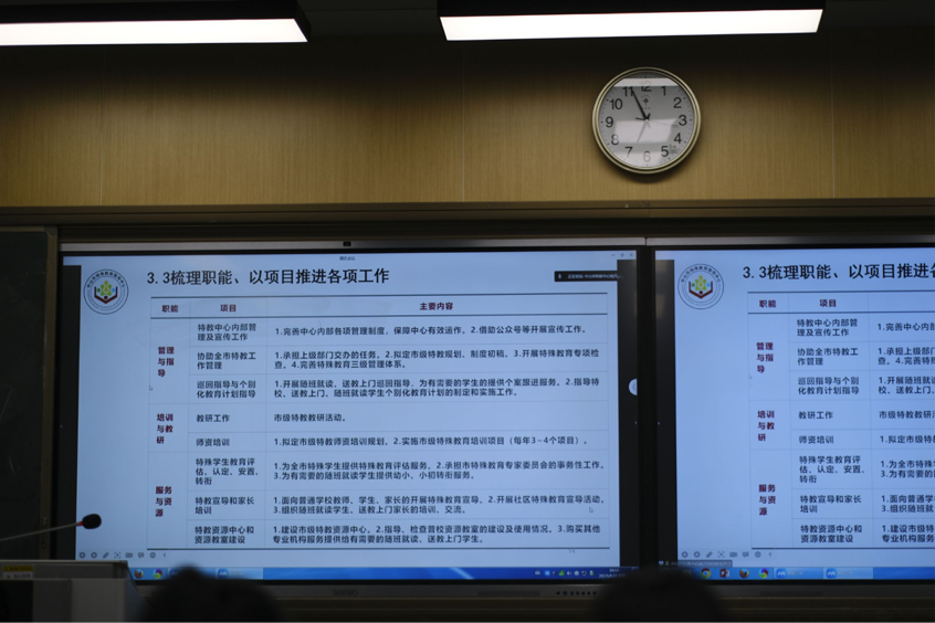 中山市特殊教育指导中心将自身职能主要梳理为管理与指导、培训与教研、服务与资源三个方面,通过成立项目的方式获得市教育局与财政局支持,协助开展全市特教管理工作。