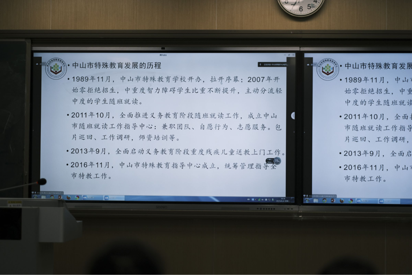 接着,林开仪从中山市特殊教育学校的校史校训、办学理念、办学目标等方面作为切入点,分享了中山市从市区层面到课堂层面的一体化特殊教育模式和中山市特殊教育指导中心的基本情况。他说,围绕“多元、融合、共享”的中心理念、怀抱“推动融合、提升质量”的工作愿景、秉持“主动作为、勇于承担、团结协作”的团队精神,中山市特殊教育指导中心自成立以来一直在不断完善自己的工作机制。