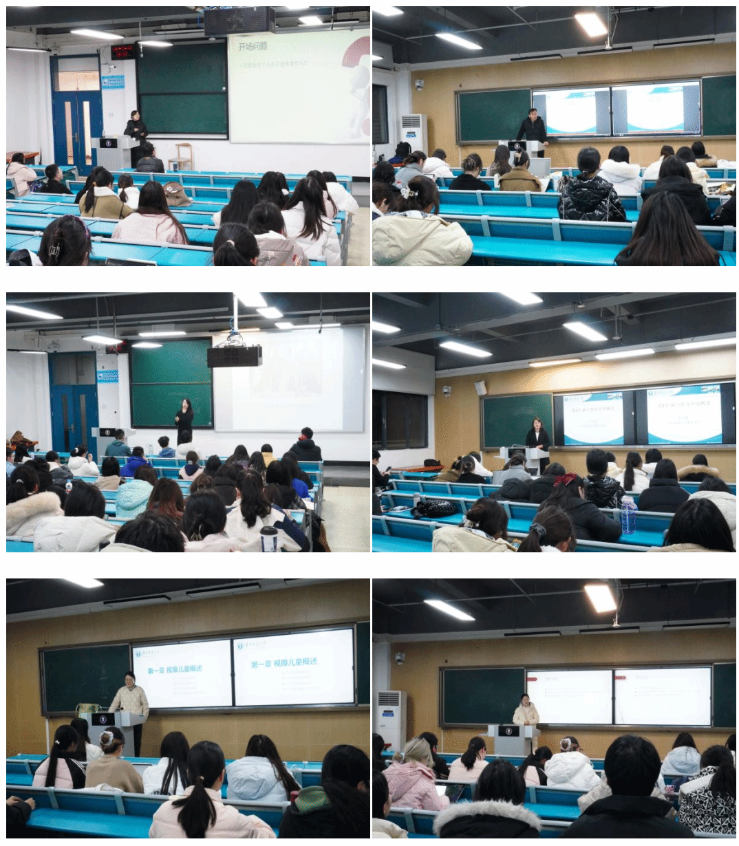 下午的课程也紧锣密鼓地开展。在《课程论》的课堂上,伍远岳、郭元祥和姚林群老师向学生指明本门课程的目标,即形成科学的课程观念,发展解决问题和教学探究的能力。并说明了本门课程学习的重难点,给予学生学习方法和学习资源建议。李卉老师在讲授《学前儿童心理学》这门课程时,深入阐释了学前儿童心理学的学科定义以及研究方法。极大地激发了学生在课堂上的参与热情,有效提升了学生思维的活跃程度。在《教师专业伦理》课程中,程红艳老师深入剖析了当下师德问题的社会根源,着重论述了师德的重要意义,重申了伦理性教师的概念。周莉老师在《儿童美术(1)》课程中,引导学生了解儿童绘画发展特点与规律,认识儿童画在成长中的作用,以及教育者如何运用科学方法助力儿童成长。她以体验式教学,有效调动了学生的学习积极性。在《教育哲学》这门课程中,岳伟老师对教育与哲学的关系、教育哲学之于教育实践的价值以及如何学习教育哲学等内容进行了讲授。