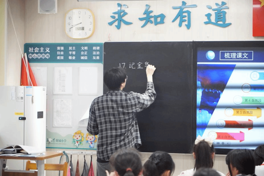 亲身感受华师附小语文课堂教学模式之后,实习生任豪逐段批注教材,圈画重点字词,深挖文本内涵,在指导老师的帮助下开展了第一次实习授课。他利用声音与图片和孩子们共同“云游”金华双龙洞,在文字里领略祖国壮丽山河之美。