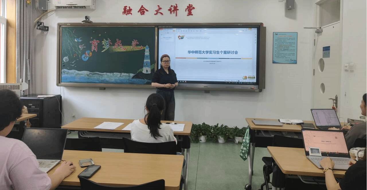 教育学院融媒体中心讯(通讯员 范丽盈 单双 吴佩琳)2025年5月,华中师范大学融合教育专业2022级学生在北京市海淀区特殊教育研究与指导中心的实习工作迎来圆满收官。本月,同学们积极投身一线教育研究,认真准备实习总结汇报、公开课汇报以及个案汇报,将自己在实习中的所学所感、实践成果全面展示。通过整理、汇报三个月以来的实习成果,同学们深化了在实践场域中对融合教育理念的理解,同时切实提升了融合教育教学实操能力与责任担当意识。