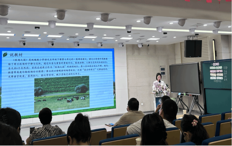 5月22日,华师附小开展第七次文心组研讨活动,邀请到了汉阳区小学语文教研员朱玉林老师莅临指导。王欢老师带来了一节生动活泼的《牧场之国》,并进行了说课,说明了她的课程设计思路与设计过程。朱老师从“任务群视域”、“阅读教学策略”、“静、动态”三个方面点评了王老师的课,在场的实习老师受益匪浅。