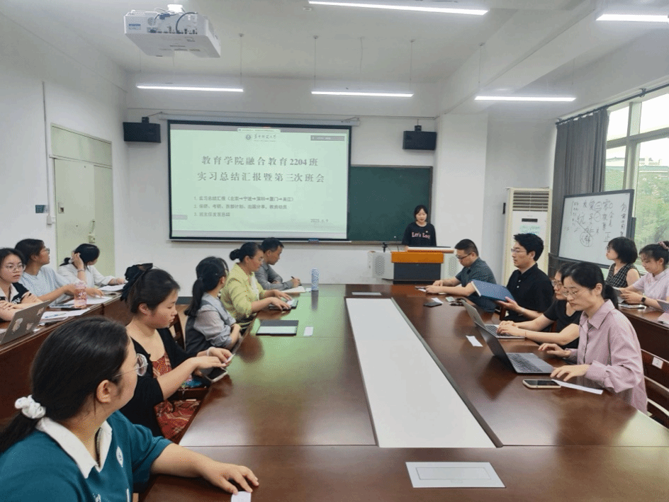 教育学院融媒体中心讯(通讯员 帅宗琳)2025年6月9日,融合教育2204班于田家炳教育书院召开主题班会,聚焦实习成果总结与未来生涯发展路径规划。班会特邀学院雷江华、彭兴蓬、王崇高、刘文元、苏慧、朱楠、韩晨等教师,以及优秀毕业生代表陈星好、孙朱宜、胡家嘉、蒋昕彤出席指导。本次会议由班长姚旭恋主持,旨在通过经验共享与深度交流,助力学生明晰发展方向,做好关键抉择。