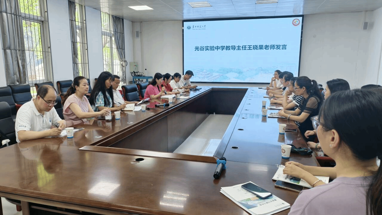 会议在王晓果老师的致辞中正式开始。她首先向教育学院三位教师的到来表示热烈欢迎,并回顾了自己及光谷实验中学与华师的深厚渊源。对于全体实习生的教育实习表现,王晓果老师给予高度认可,她指出实习生在出色地完成教育教学活动之外,还协助学校团委、学生成长中心、九年级组顺利完成了团员纳新、心理游园会、月考考务等校务工作,充分展现出华师学子“忠诚博雅 朴实刚毅”的品格。作为华师校友,她从“文化认同”“业务精湛”“作风严谨”“言行举止”“淡泊名利”五个方面分享了一名教师应达到的标准,并以“敬”“严”“细”“实”“恒”五字勉励实习生,希望大家未来如果从教能以此为舵,早日成长为一名优秀的中小学教师。