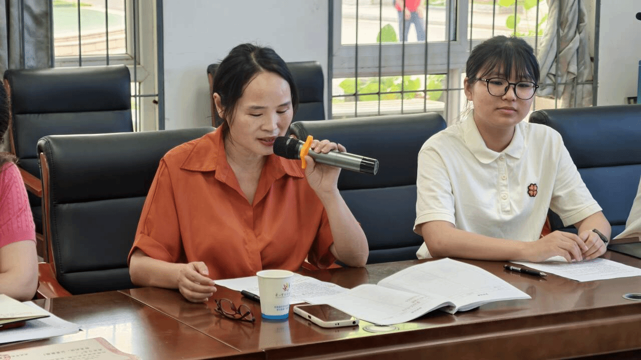 九年级语文组备课组长张利琼老师作为指导教师代表发言。她对于所带班级929班的两位实习生李傲、向陈莹的表现给予充分肯定,尤其对李傲予以高度赞赏。作为李傲的实习导师,她从班级教学、作业批改、班主任工作、班级活动全方位点评了李傲的实习工作,并着重分享了他在九年级研学活动中的出色表现,不仅作为“代理班主任”全程陪同,而且化身“专业摄影师”用镜头记录下学生的精彩瞬间。张老师表示,唯一遗憾的是由于进校实习时间较晚未能过多与李傲探讨教学的艺术,但她已将自己的录课视频分享给李傲,希望能对他有所启发。