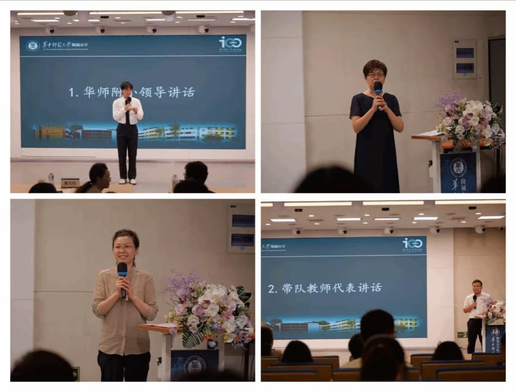 随后,参会领导和老师们进行了实习工作总结讲话。华师附小副校长甘爱民对实习生的表现给予了高度评价,并鼓励他们未来继续在教育道路上砥砺前行;带队教师孙银光分享了带队过程中的点滴故事与深刻感悟;教育学院党委书记陈雪玲则对实习生们提出了更高的期望与要求,希望他们能将实习经历转化为未来职业生涯的宝贵财富。