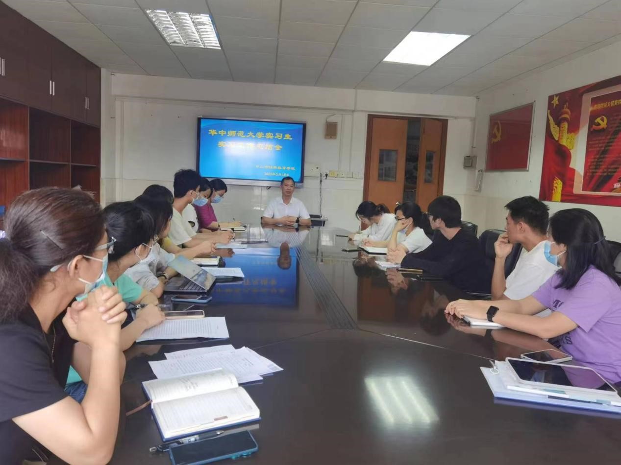 5月17日,中山市特殊教育学校举办华中师范大学实习生实习总结会,出席会议的有中山市特殊教育学校卢超文校长、教务处副主任周建平、实习指导老师高微微、潘玲玲、马晓强、赵娜、王丽维、张晓丽等以及华中师范大学六位实习生,会议由周建平主持。