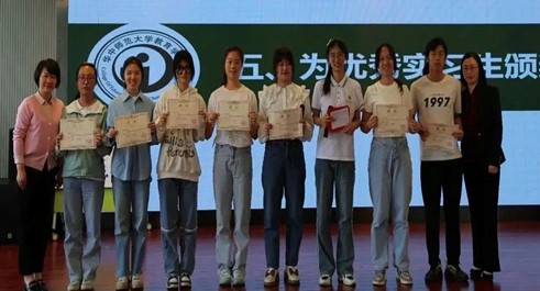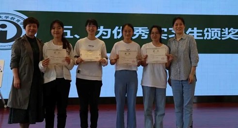 大会临近尾声,进入颁奖环节,老师们为混龄班和平行班优秀实习生进行集体颁奖并合影留念。