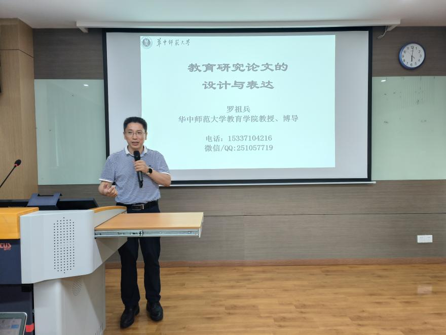 教育学院融媒体中心讯(通讯员 周小宇 李婉澜)2024年6月6日18:00,教育学院课程与教学论专业硕士研究生第十五期“学术月会”在教育学院905教室顺利举行。本期“学术月会”由罗祖兵教授主讲《教育研究论文的设计与表达》。参加此次活动的有教育学院课程与教学论专业、小学教育专业等专业的硕士研究生、博士研究生,共110余人。