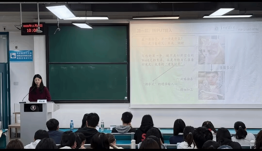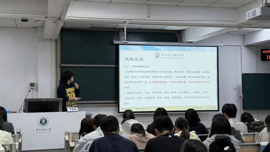 围绕基础技能提升,培训安排了丰富实用的课程内容。音乐学院2023级音乐学专业本科生何叶小露带领全体营员学唱团歌、校歌,激发了营员们的集体荣誉感和青春正能量。教育学院2022级本科生李慕瑶就财务报账流程作了详细讲解。华大青年融媒体中心文字采编部负责人余俏然开展了“写出有价值的校园新闻”专题培训。经济与工商管理学院团委书记樊启迪则以“能说会写,善思巧干—学生干部文本写作能力提升”为题,强调优秀的文本能力不仅是职业发展的基石,更是高效沟通与个人成长的重要支撑。