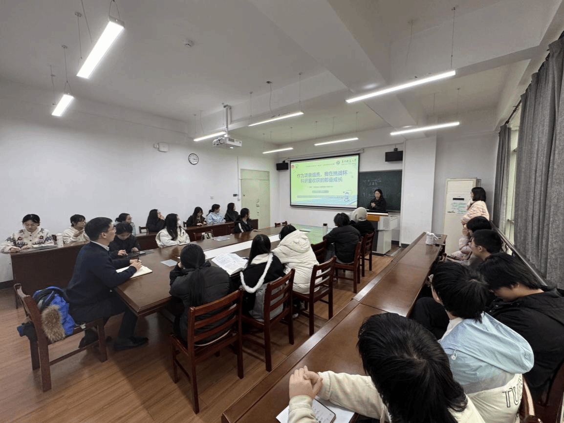 本次班会分为学期总结、班委述职、竞赛分享、答疑解惑四个环节。在学期总结环节,班长曾赛娅系统梳理了本学期班级在组织建设、活动开展与学风营造等方面取得的进展,并围绕组织建设、集体发展、活动开展及学风建设四个维度展开汇报。她提醒各位同学期末临近要合理规划时间,提高复习效率,端正考试态度,以饱满的热情迎接期末。
