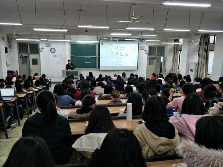 教育学院2017级宣传部讯(通讯员:李锦如 编辑:张萌)2018年3月11日晚上5:30,教育学院2017级晚点名在8201教室顺利开展,本期晚点名开展了第一期“我的大学生活”分享会,本期邀请了2017级班主任王帅老师担任主讲嘉宾,分享会由辅导员覃娟老师主持。