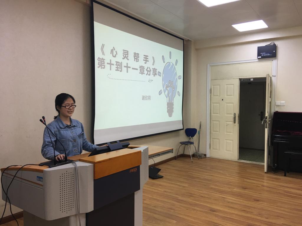 活动伊始,在团支书喻昊雪对活动主题、活动流程进行简单介绍后,同学们的分享活动就开始了。支部成员们或朗读经典,或概述名著,运用多种方式进行分享。谢欣荷凭借制作精美的PPT,结合人们耳熟能详的事例为大家带来《心灵帮手》。李洁瑶则通过朗诵向在场成员介绍经典《夏山学校》。