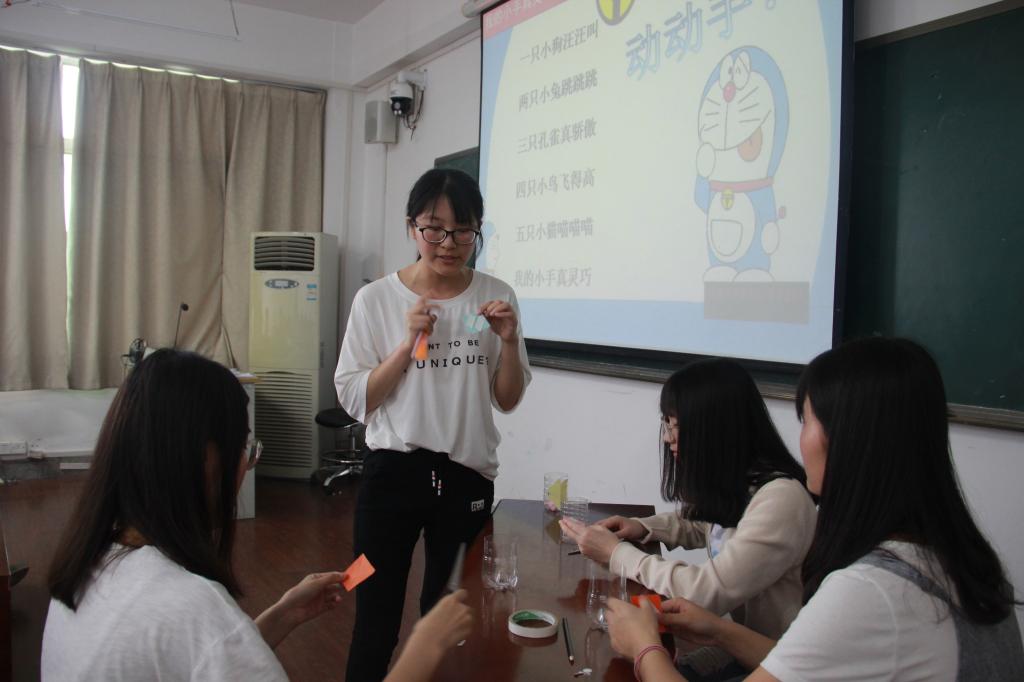 活动伊始,胡光亮对此次比赛的规则进行了简单介绍,参赛选手抽签之后,模拟课堂大赛正式开始。11位参赛选手以讲故事、唱儿歌、玩游戏、做实验等方式分别从科学、社会、健康等领域进行模拟授课,授课对象主要针对学前儿童、小学生和智力障碍儿童。其中,谢欣荷以讲故事的方式向幼儿园中班的学生讲授了平常生活中的受到性侵犯时如何自我保护;李心仪通过换装游戏让小学三年级学生学习不同服装的英语表达;郑怡岑以 “掌握正确洗手方式”为教学目标,遵循“小步子”教学理念,让幼儿园中班的小朋友习得一套自编洗手操——《小猪佩奇要洗手》。各位参赛选手凭借充分的赛前准备以及形式多样的授课方式,多次引起场上观众的热烈掌声。
