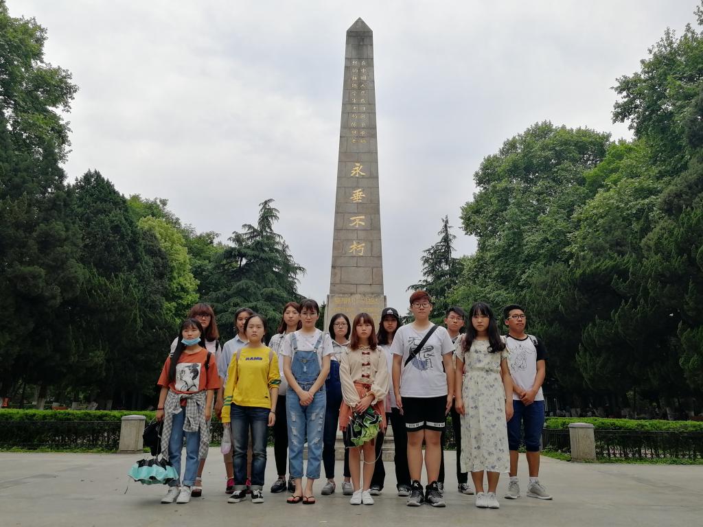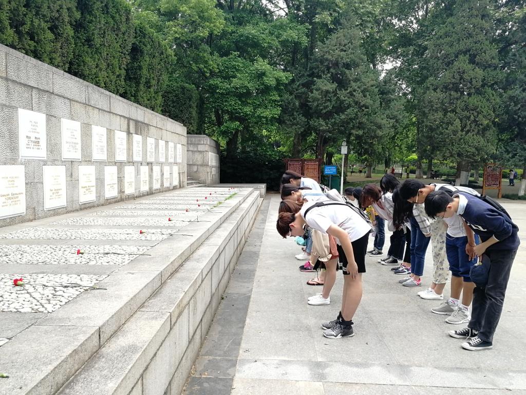 四点整,原先分散参观公园景致的团员们于苏联空军志愿队烈士墓前集合,这块纪念碑是抗日战争时期为支援中国人民而英勇献身的苏联空军志愿队15位国际主义战士的坟墓,也是此次参观的重点所在。团员们静立于纪念碑前,浏览先烈的丰功伟绩,并深刻反思了当代青年的责任与担当。离开前,团员们集体向纪念碑鞠躬致敬,以示对烈士们的敬仰与感激。最后,大家集体归队,由班长原路带回。