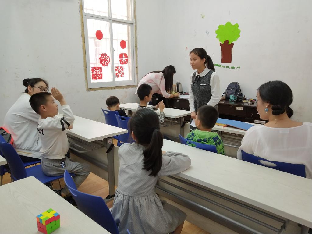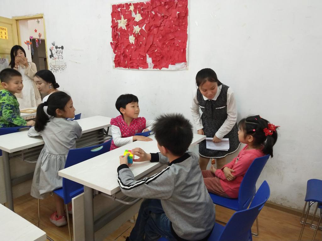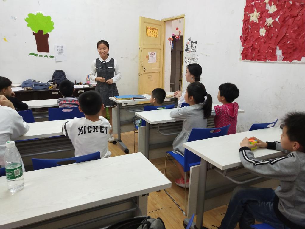 第一项活动是“绕口令 我能读”,志愿者将写有“亮晶晶”、“爸爸爱花我爱画画”等有趣绕口令的纸条贴在黑板上,并带领孩子们进行朗读。在老师的领读以及志愿者们的帮助练习下,孩子们纷纷举手,进行流利朗诵绕口令的挑战。
