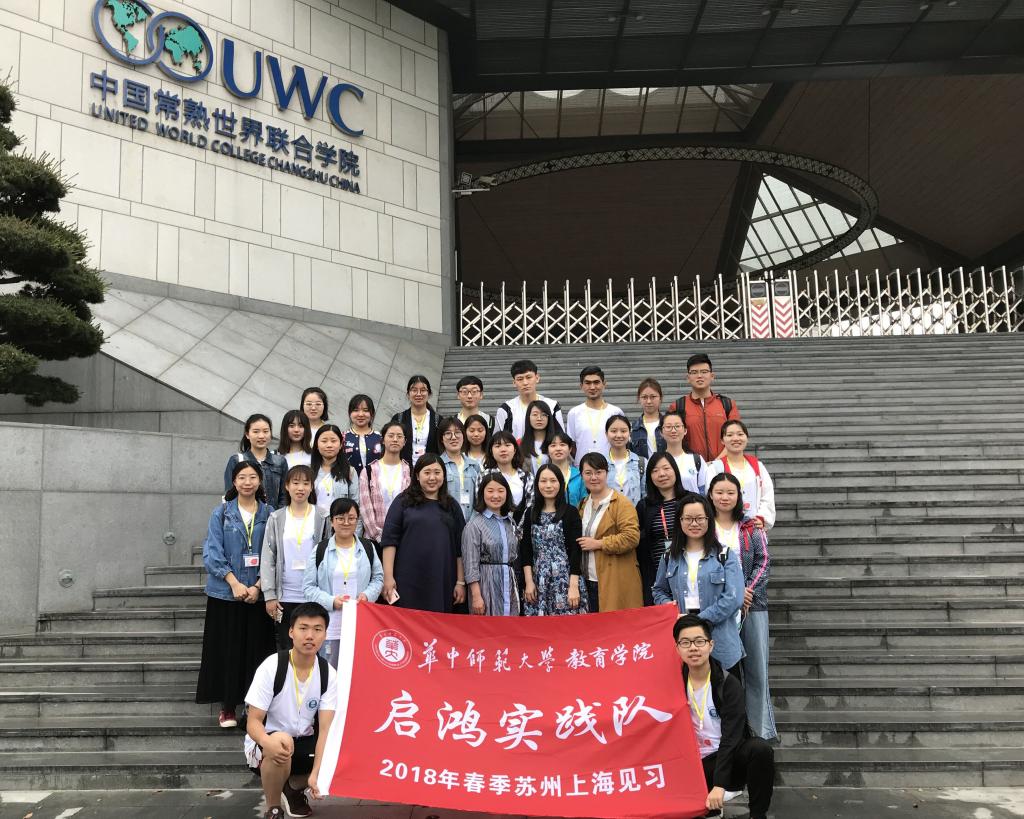 教育学院宣传中心讯(通讯员:段仰拙 曹星儿 编辑:张萌)为进一步加强人才培养合作,深化实习就业基地建设,培养学生专业实操能力以及综合实践水平,我院“启鸿·实践队”于2018年4月23日至28日开展了为期一周的教育实践活动。活动首日,30余名队员在学院分党委副书记李静、团委书记王倩倩的带领下,分两批前往本次见习活动的首个目的地—教育学与学前教育专业的同学来到了苏州国际外语学校,特殊教育专业的同学则出发前往苏州盲聋学校。