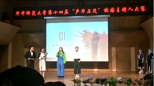 4月21日晚,“华中师范大学第十四届校园主持人大赛”决赛在音乐厅隆重举行。胡爱迪携手张綦哿共同演绎了《哿迪解说大闯关》,他们以模拟主持的形式,两人化身马里奥对电影《三块广告牌》进行了生动的解说。胡爱迪以其新颖的创意、自然大方的台风向大家多角度评价了武大靖等热点事件,引得观众席阵阵欢呼。