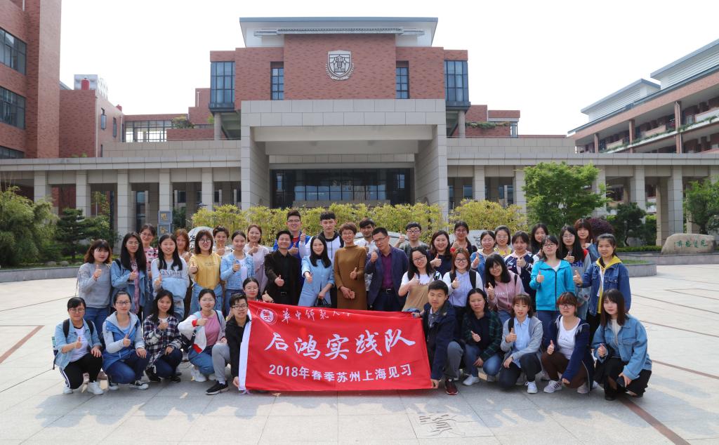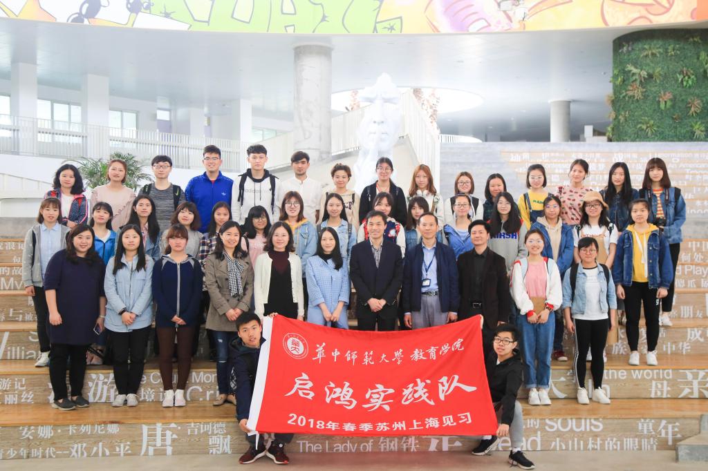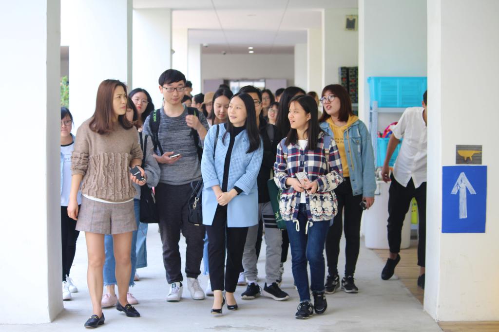 教育学院宣传中心讯(通讯员:段仰拙 编辑:张萌)4月25日是“启鸿·实践队”见习的第三天,实践队员们在教育学院分党委副书记李静和团委书记王倩倩的带领下来到了江苏省苏州市吴江区的两所公办小学进行观摩学习。上午9时许,实践队员们到达苏州湾实验小学。学校的校长一行在校门口对实践队的到来表示热烈欢迎。随后校长带领实践队员参观了校舍环境,学校通过利用原生态的建筑材料以及先进而富有创造力的设计理念打造了兼具现代化和实用性的学校环境。在学前部,同学们还观摩学习了幼儿园的班级环境创设以及户外活动区。参观结束后全体实践队员来到了学校会议室,校长通过播放吴江区政府的宣传短片向与会者展示了吴江区近年来的经济文化发展状况并尤其就教育投入向大家做了详细介绍并提出了当前学校对于教育队伍建设的需求。