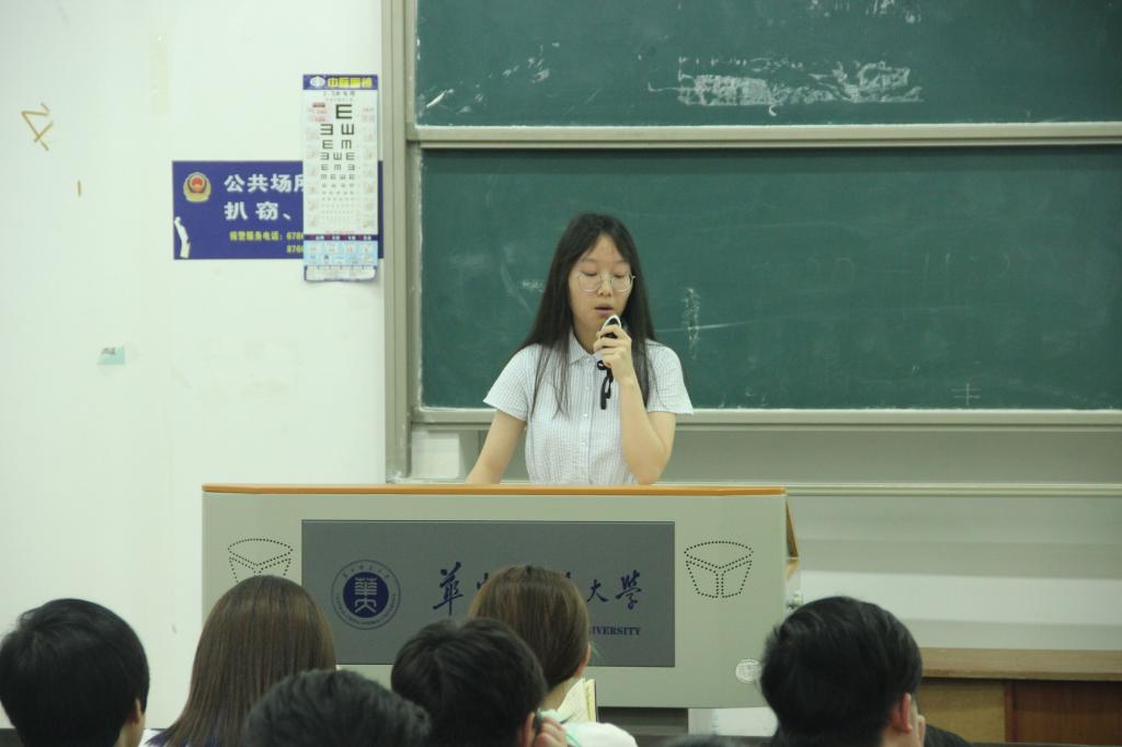 胡静同样还推己及人,以“主智主义教育在我国的情况”、“我国关心教育的现状”等话题引出自己的思考与感悟,深入我国现行教育实际进行申发。她重点分享了自己对“教育的应然状态与实然状态”的观点,认为理想的教育与现实教育间存在着的巨大的鸿沟,为同学们教育理想的形成提供着契机。