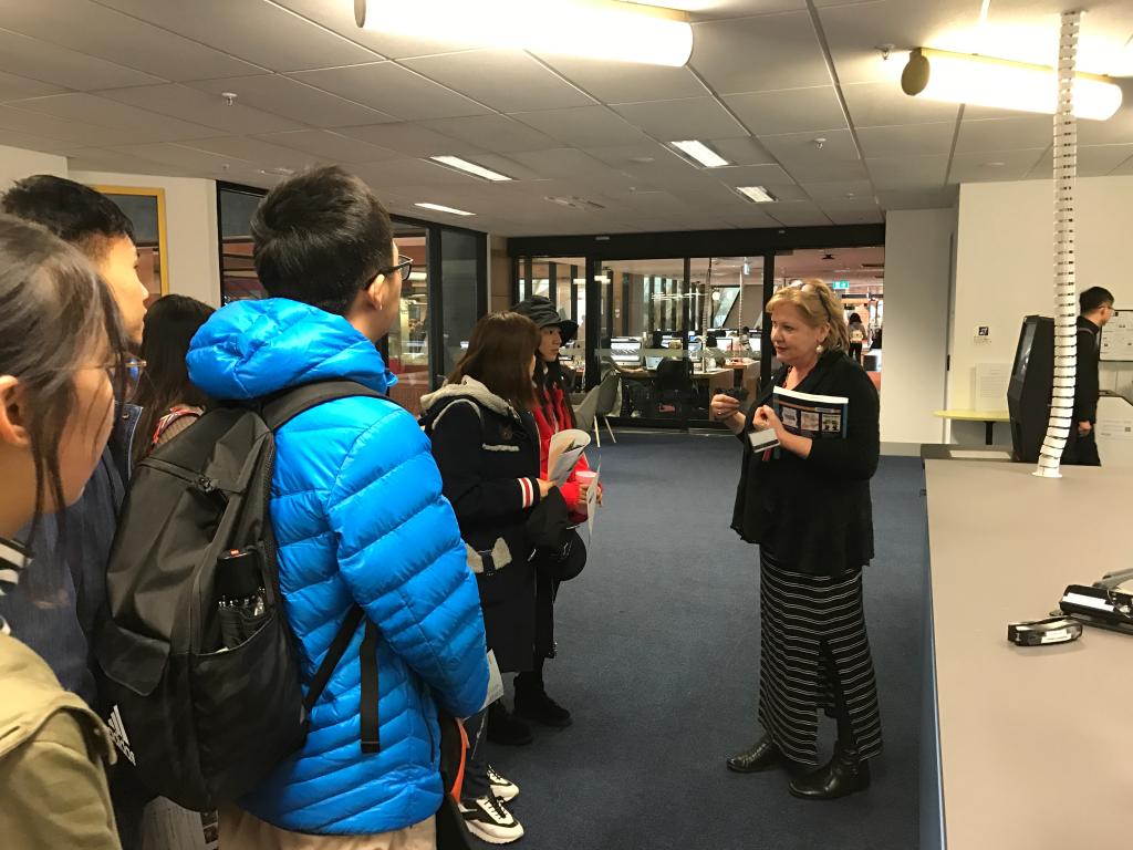 队员们首先参观的是RMIT图书馆,馆内工作人员首先为队员们介绍了实体图书馆的基本情况,并通过座谈的形式介绍其网上图书馆的运行方式,解答了同学们提出的online courses等问题。座谈期间,工作人员向队员们重点介绍了该馆提供的一项颇受欢迎的免费服务,即设专业人员为学生提供作业选题和书籍阅览多方面的学习援助,以便最大程度上满足学生的学习需求,这一温馨服务得到了队员们的一致好评。