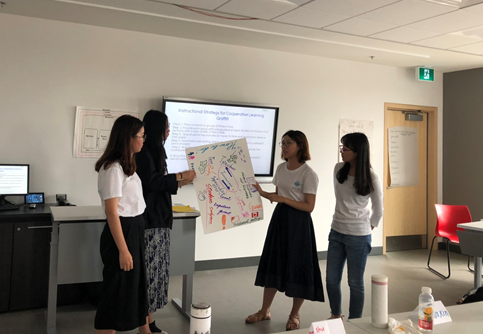 下午1时,助理教授Linda Radford为我院学生讲授主题为“Leadership in curriculum design”的课程。Linda首先开展了名为“Graffiti”的小组活动,三组同学围绕“课程”、“教学”和“评价”这三个关键词进行联想,在一张巨大的白纸上以名词或图画的形式表现。随后,Linda对“evaluation”进行了深入讲解,引导同学们思考“要想进行不同的评价,我们需要具备怎样的能力”。