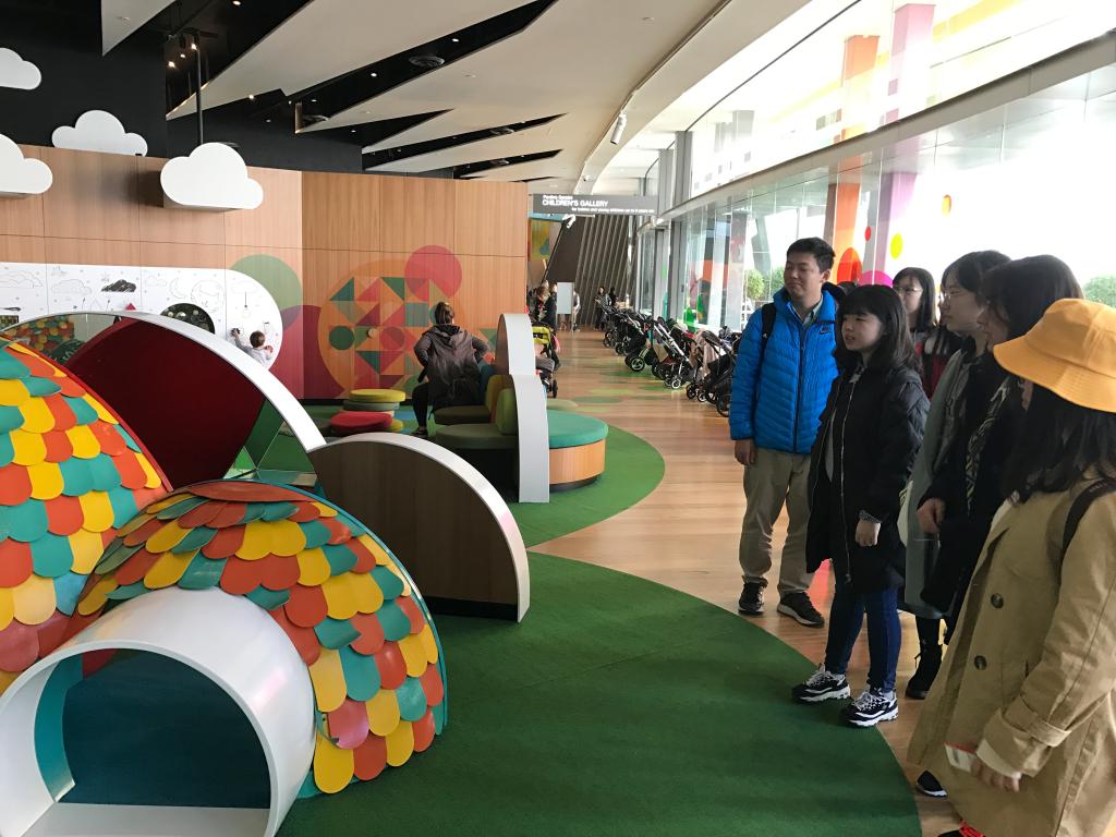 8月1日,全体队员由Cheryl老师和Molic 老师带领 参观维多利亚国家艺术馆和墨尔本博物馆中的儿童画廊,感受墨尔本教育的基础设施。整个展厅的布置温馨而又开阔,儿童活动区域有丰富的感官游戏设施和绘本阅读区域,儿童可以自由选择进行攀爬、舞蹈等活动。良好的基础设施为儿童的身心健康发展、全方面发展提供良好的环境。