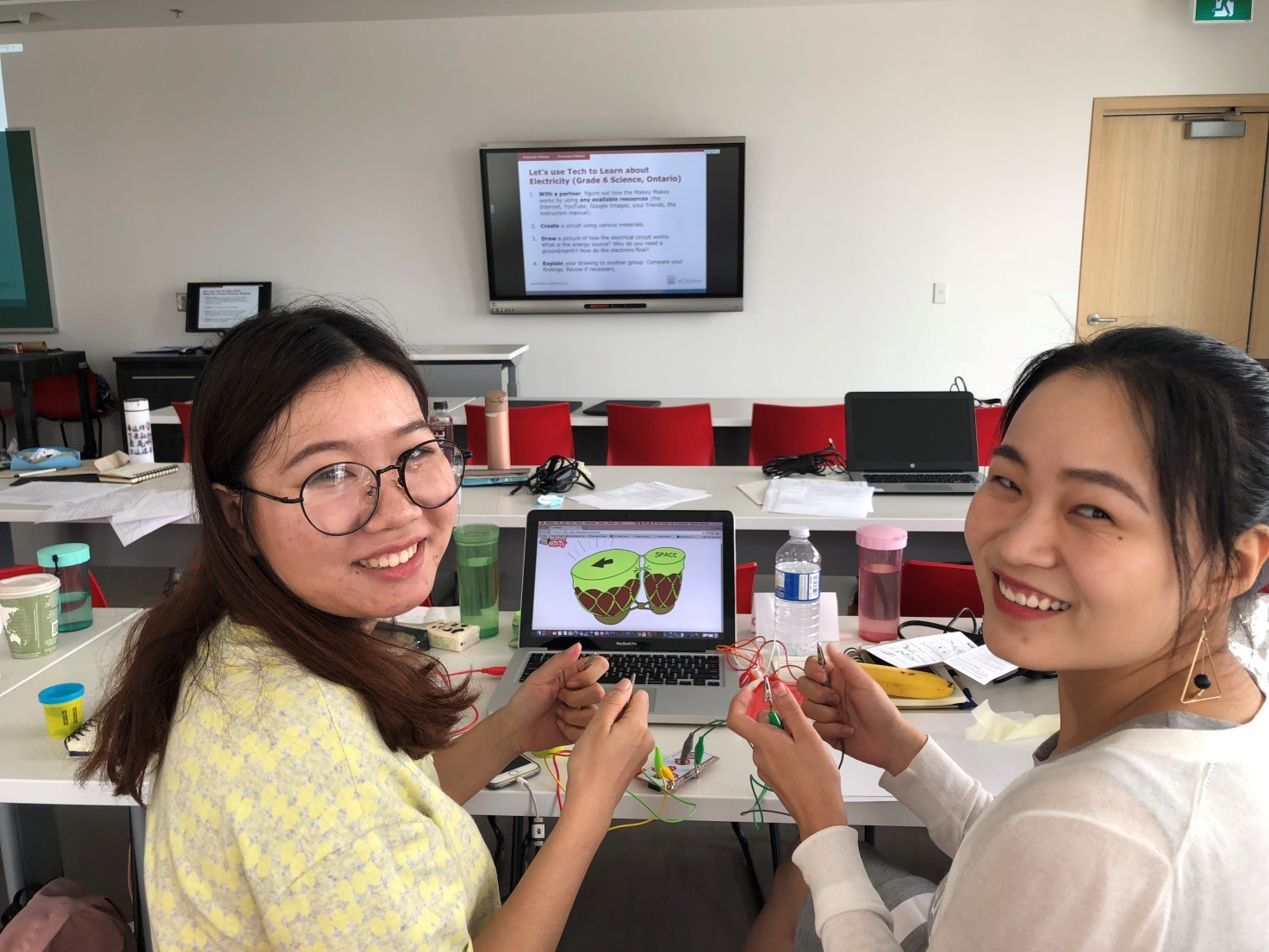 最后,Michelle利用一项技术玩具即Makey Makey开展活动,带领大家体验了课程中利用技术解决问题的乐趣。此活动需要同伴合作利用各种物品设计电路,并再次利用“Triple E Framework”对此活动进行评估,达到了举一反三,活学活用的目的。