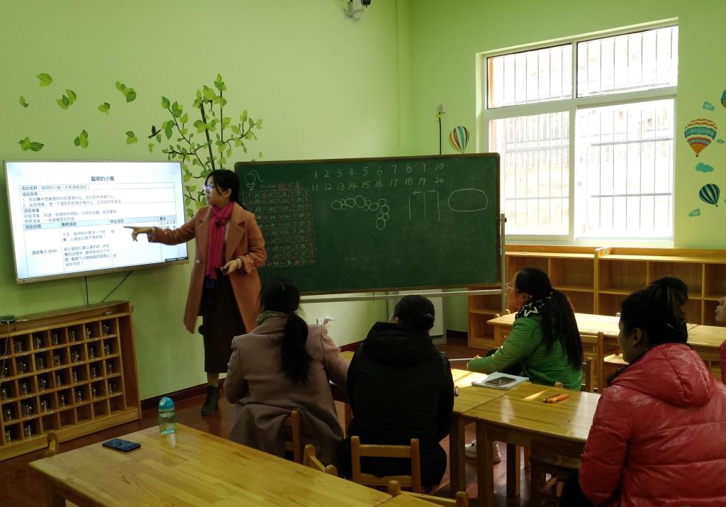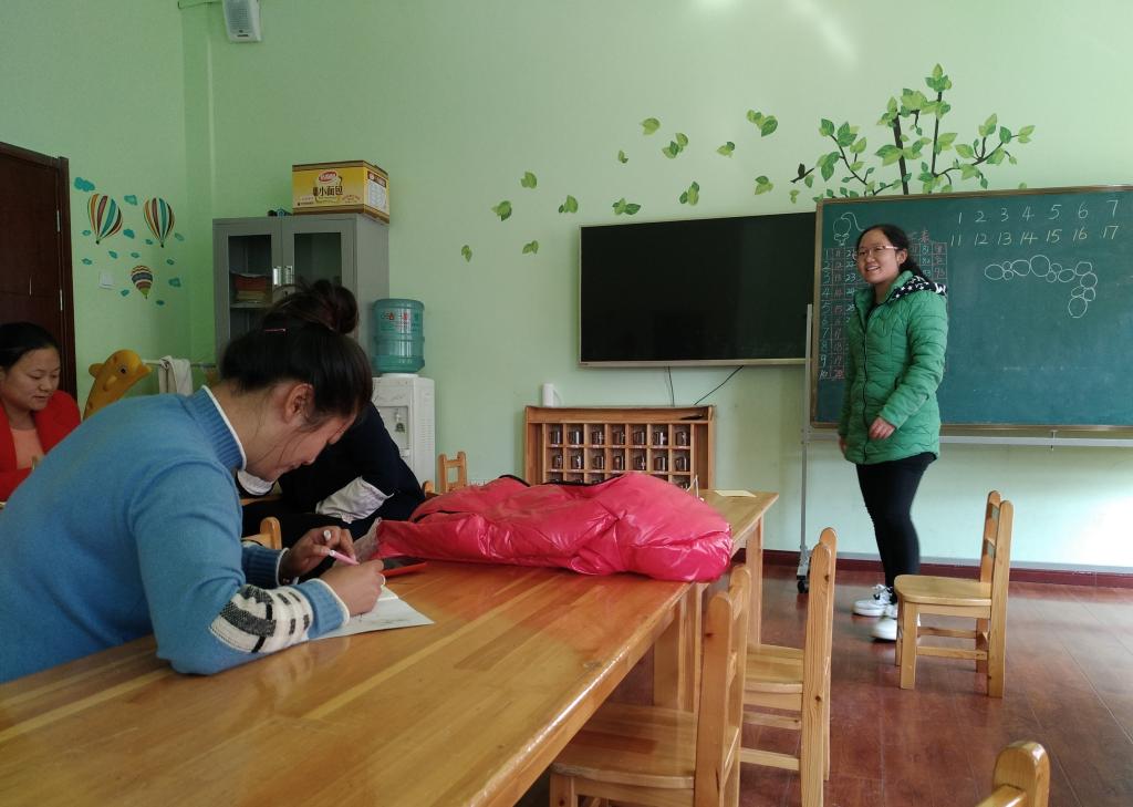 周日上午,团队里的党娇、金董伟分别对该园的五名老师进行了培训指导。金董伟从课程分类出发,讲述了幼儿园的五大领域,还就如何提高孩子们的注意力给出了自己的建议。党娇则对老师的教案进行重新设计,并在下午时通过说课讲课检验了老师们的学习成果。