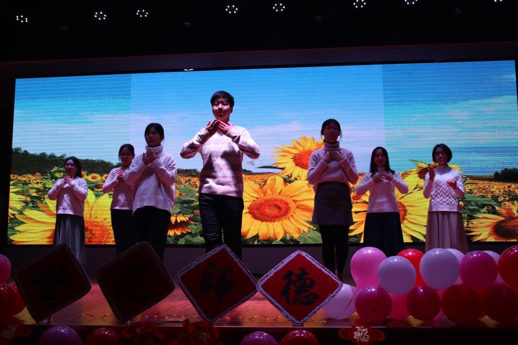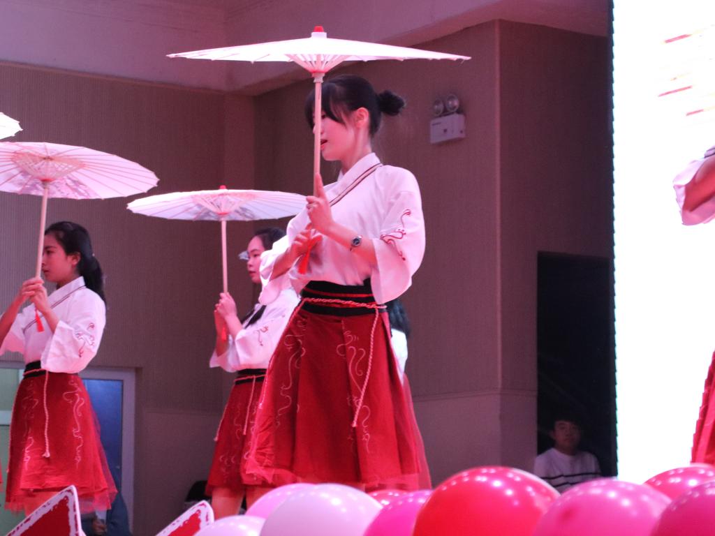 “捧着一颗心来,不带走半根草去”,率先上演的教育剧《陶行知》讲述了中国近代教育家典范陶行知先生的教育故事,用生动的演绎诠释了何为“师德”。随后,由申国昌老师以及我院1802班、1804班学生共同朗诵的《老师,我们有话对您说》唤醒了在场师生对教学生涯的感人回忆,深深感动了在场观众。紧跟其后的《长大后我就成了你》再续感动,盲文手语协会以无声言大爱,展示了乡村教师多年的教育坚守。板块最后是我院团委学生会艺术团表演的古风舞蹈《千年愿》,少女们撑着油纸伞翩翩起舞,成为本次晚会非语言类节目的一大亮点。