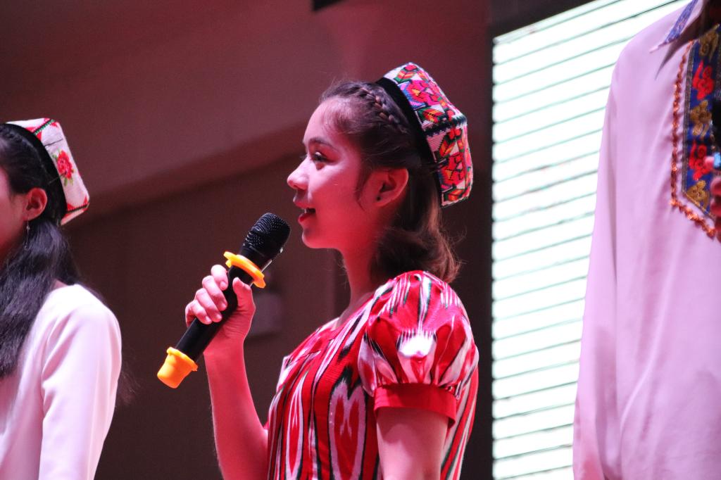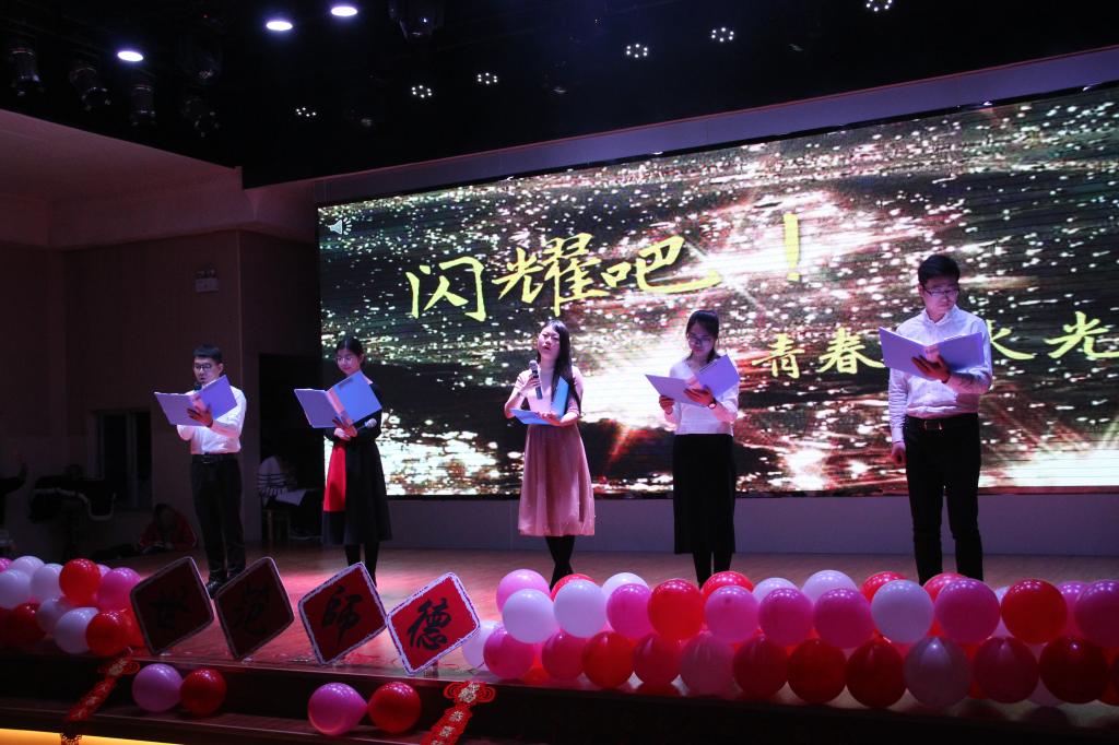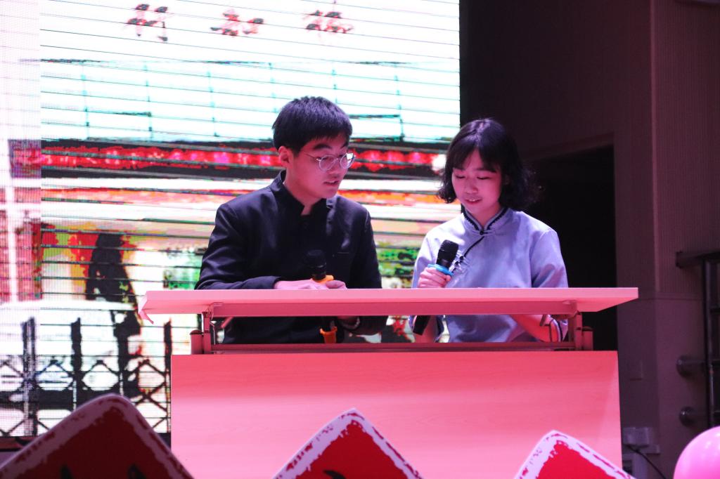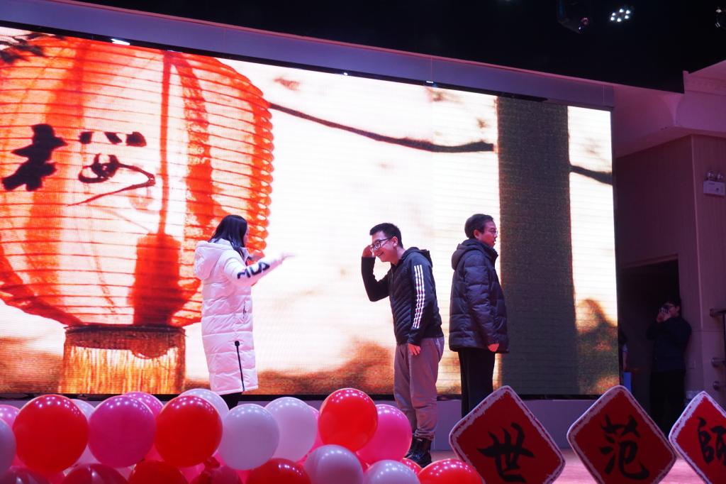 各板块之间还穿插进行了“你演我猜”游戏环节,现场观众用击鼓传花的方式决定参与人选。应同学们热情高涨的呼声,李静、陈佑清、欧阳广华和张萌等4位老师上场参与了游戏,他们的肢体演绎引得全场笑语连连。
