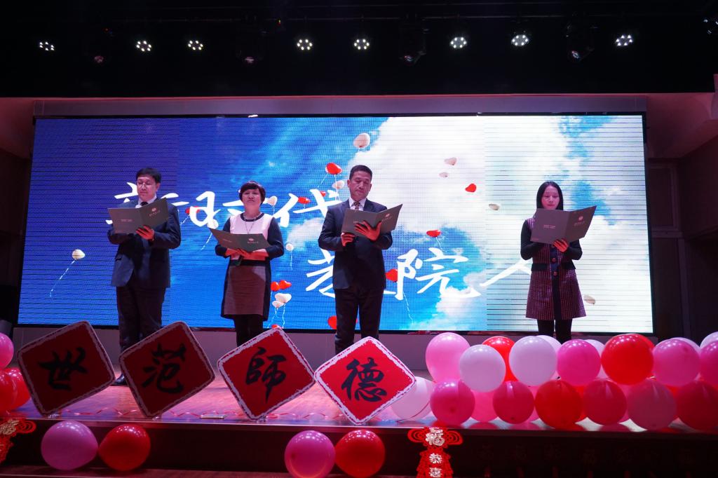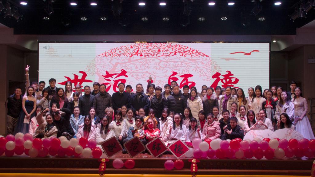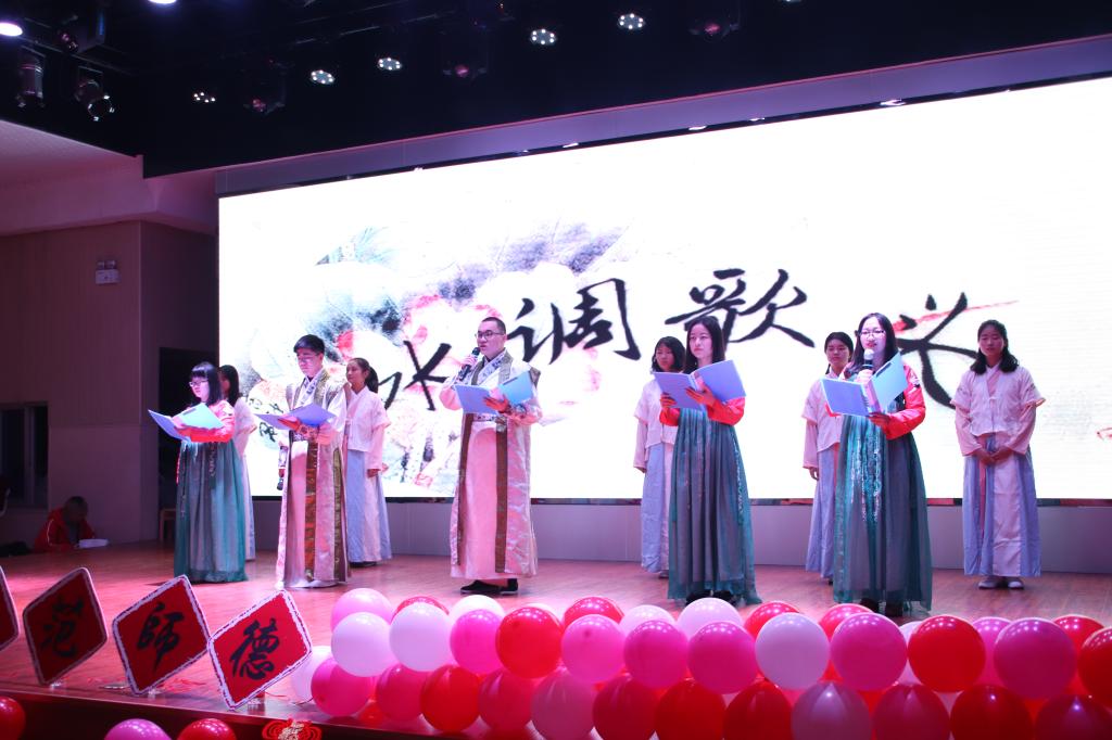 本届诗歌朗诵会以“世范·师德”为主题,由我院师生共同演绎,融合了校园生活、师德精神、民族文化、流行色彩等多种元素,音乐学院、华大艺术团等组织和学生团体代表也应邀参演,现场布置精美,气氛热烈。