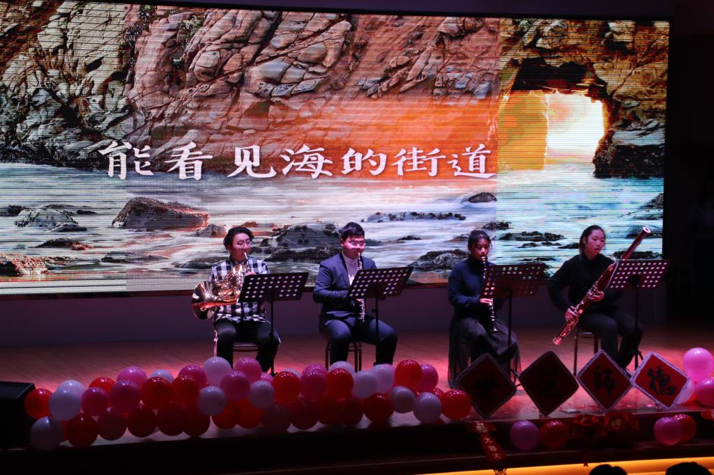 晚会在李玲书记与雷万鹏院长的祝福视频中拉开帷幕,新到来的2019年是中华人民共和国成立70周年,同时也是教育学院建院95周年,两位领导鼓励教院师生“扎根中国大地办教育”,“坚持充分的文化自信和教育自信”,潜心学习、不断钻研。值此新年欢聚之际,两位领导向教育学院全体师生送上了新年祝福。其后,华大艺术团管乐团一曲《能看见海的街道》合奏引领观众正式走进诗歌的世界。