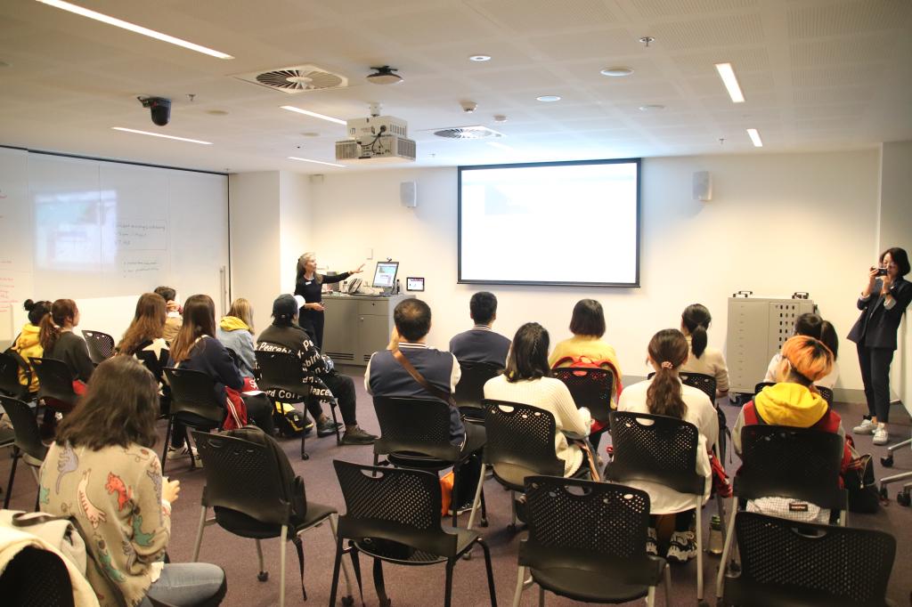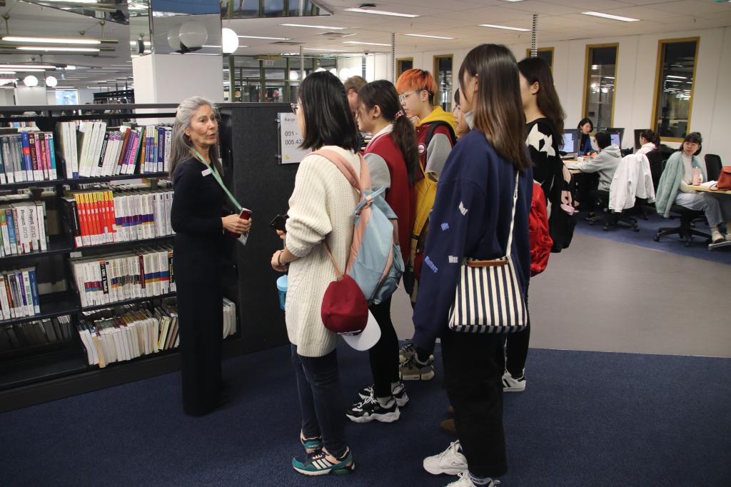 队员们首先进入RMIT的图书馆内,聆听图书管理员对于RMIT图书馆网上管理系统的介绍,先后学习了实体图书的检索借阅流程、网上文献检索和下载方式、图书管理员线上求助系统和图书馆电脑预约流程等多项功能。接着,队员们分组参观了RMIT的图书馆内设施,对RMIT丰富的线上与线下资源配备情况有了深入了解,为日后赴澳开展学习打好基础。
