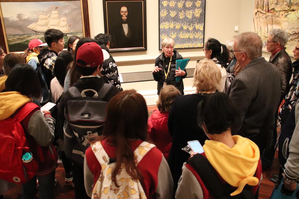 在维多利亚州国立美术馆,队员们先后前往中国分馆、欧洲分馆、非洲分馆和澳洲本土分馆参观,通过观览不同地域的文物、绘画、雕塑、音视频作品和各类创意作品,感受不同文化的差异,提升国际视野。