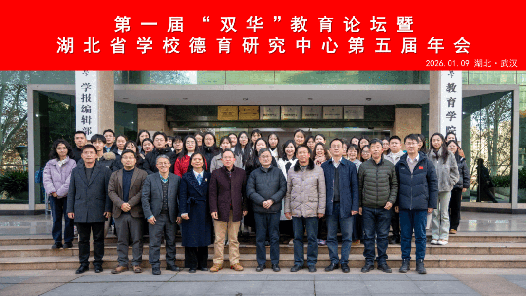 教育学院融媒体中心讯(通讯员 邓诗弋 胡凯琳 何展宏)2026年1月9日下午2点30分,第一届“双华”教育论坛暨湖北省学校德育研究中心第五届年会在华中师范大学隆重召开。本次大会由华中师范大学道德教育研究所主办,华中科技大学教育科学研究院教育学研究所协办,近五十名两校的专家学者、硕博学生共聚一堂,畅谈学术。