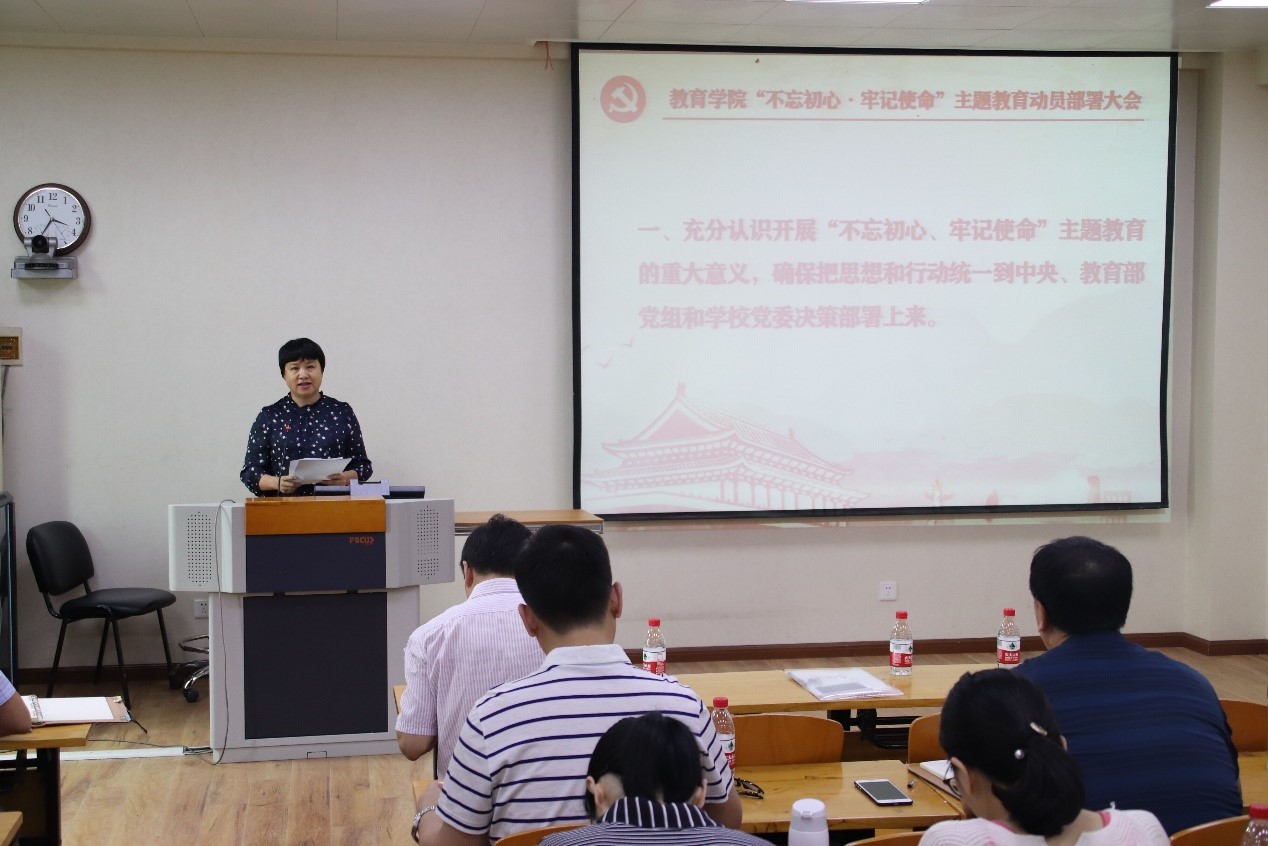 本次“不忘初心、牢记使命”主题教育将从9月份开始,11月底基本结束。以本次大会为起点,教育学院党委“不忘初心、牢记使命”主题教育全面启动。