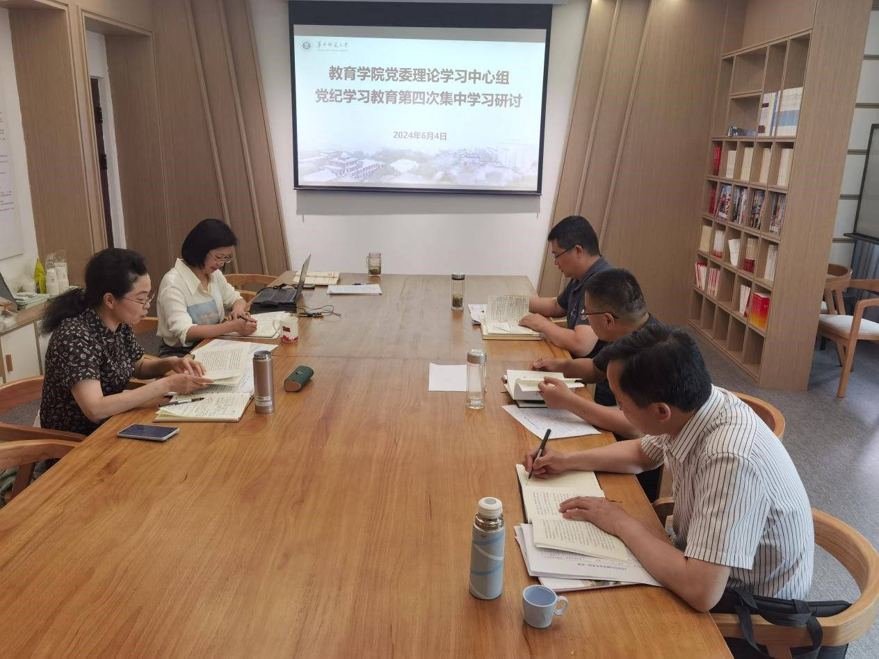 教育学院融媒体中讯(通讯员 刘馨雨)6月4日,我院2024年度学习贯彻习近平新时代中国特色社会主义思想读书班暨党纪学习教育专题读书班第四次集中学习研讨在田家炳楼党员活动室举行。