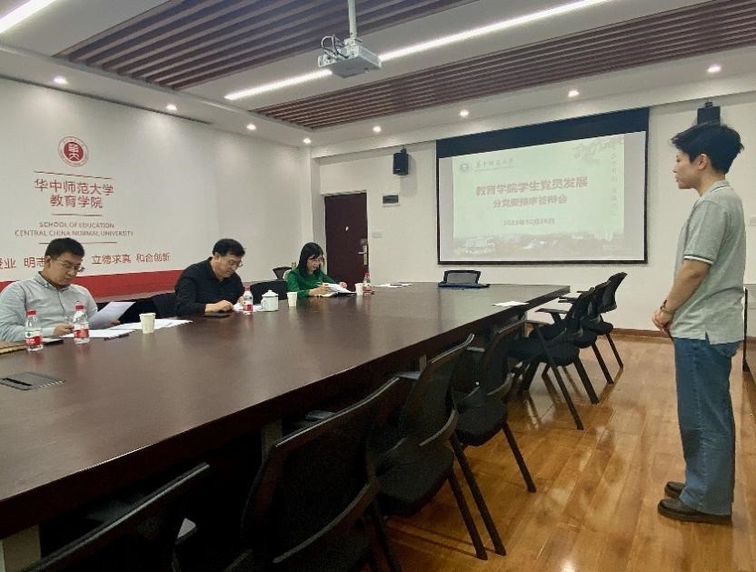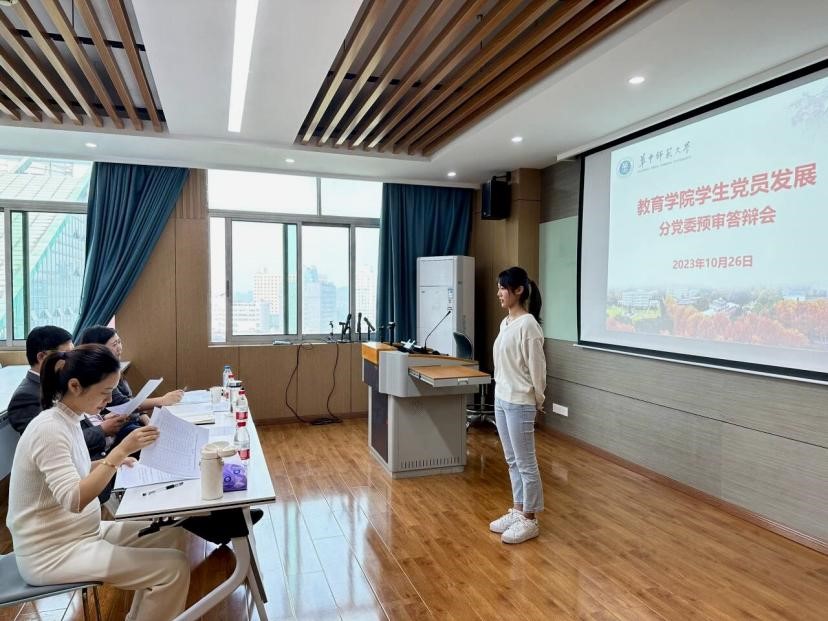 教育学院融媒体中心讯(通讯员 李玉凤)10月26日下午,教育学院2023年党员发展分党委预审答辩在田家炳教育书院901、905、909教室分别进行,院党委书记陈雪玲,党委副书记苏春艳、王璐,副院长田友谊,党委委员申国昌,辅导员王诗薇、王倩倩、张萌、刘雅欣担任评委。