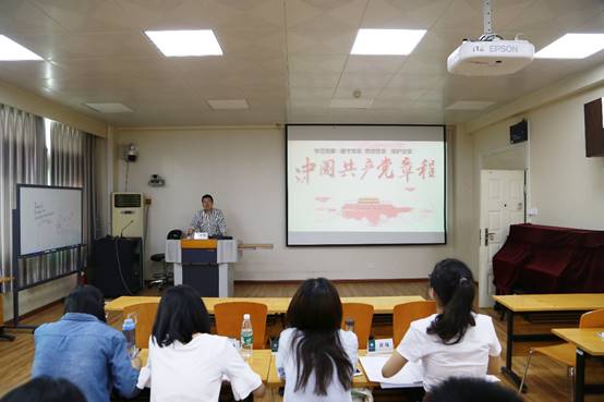 教育学院宣传中心迅(记者 郑怡岑;摄影:袁腾飞;编辑:吴佳妮)2019年5月11、12日,由教育学院、心理学院、国家数字化学习工程技术研究中心联合举办的党员发展对象培训班在田家炳502教室举行。培训班邀请了教育学院党支部书记郑刚作题为“解读《中国共产党章程》”的主题授课。